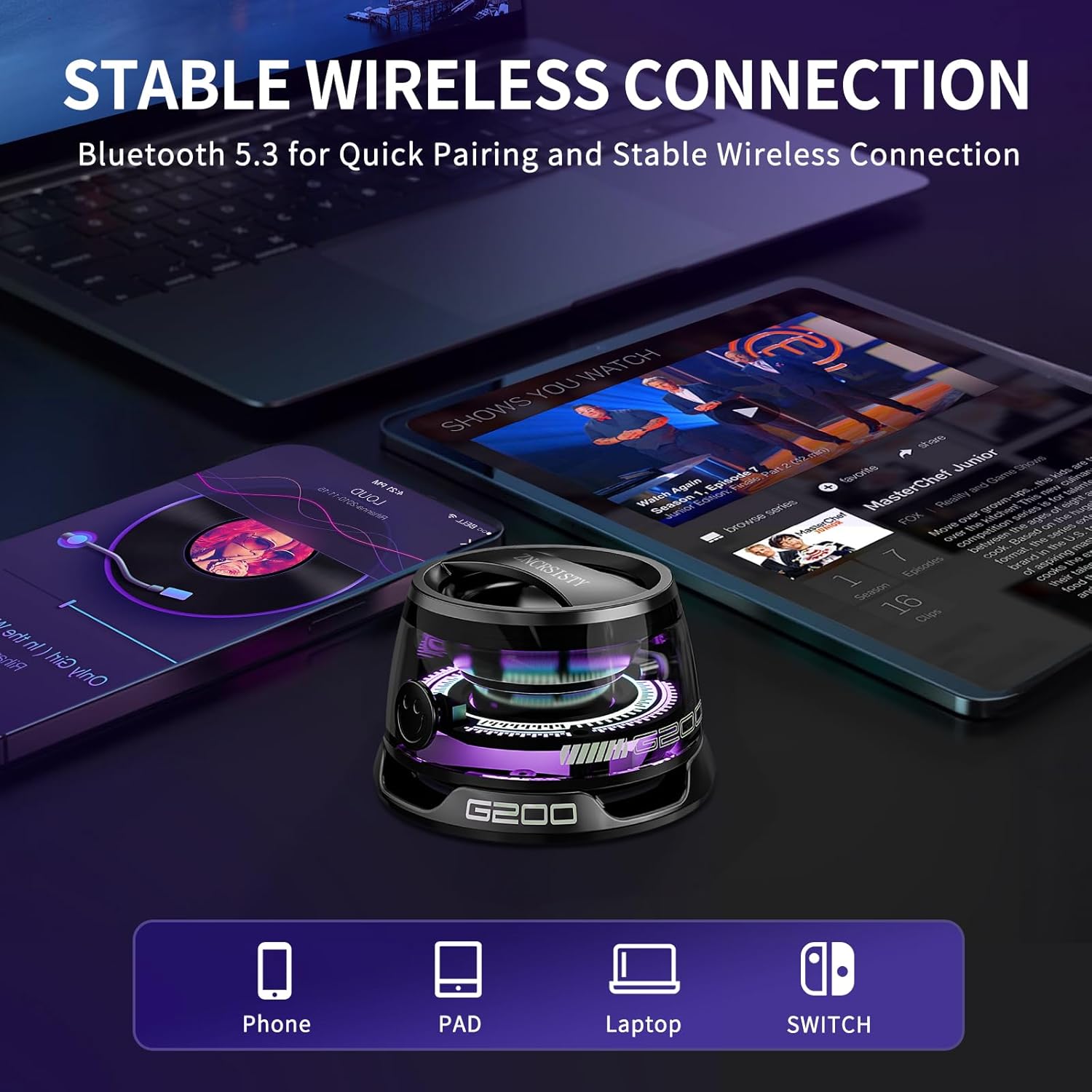 This mini Bluetooth speaker features a magnetic base, allowing you to attach it easily to metal surfaces for stable placement. The vibrant RGB lighting enhances your atmosphere during parties, gaming, or camping nights.