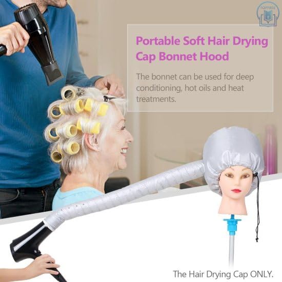 Experience effortless salon-style drying at home with our Portable Soft Bonnet Hood Hair Dryer Attachment. This lightweight and comfortable bonnet cap transforms your regular blow dryer into a professional hair drying and treatment system, making it ideal for hot oil treatments, deep conditioning, or roller sets.